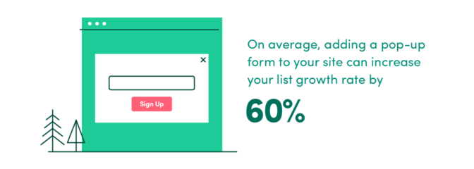 Pop-up forms tend to get a bad rap for being annoying or intrusive, but when you use them the right way, they can help you drive signups and revenue for your holiday campaign. We even found that adding a pop-up form to your site can increase your list growth rate, on average, by 60%.