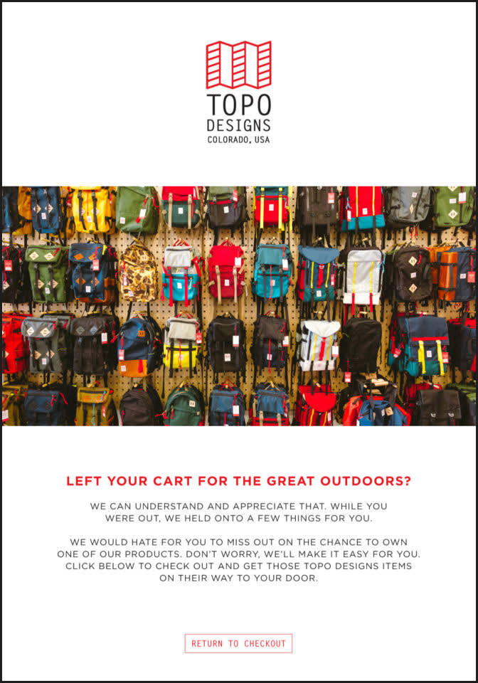 For the marketing team at Topo Designs, there wasn’t a question of whether they’d set up an abandoned cart campaign. It was when.