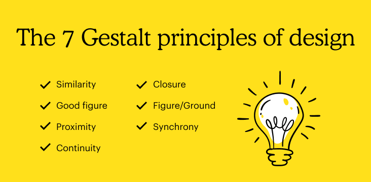 The Gestalt principles were formed in the 1920s by psychologists about how people view their surroundings. Ultimately, it studies how the human brain reads and interprets visuals. For example, you can use different shapes to create a visual because your brain fills in the blanks automatically.