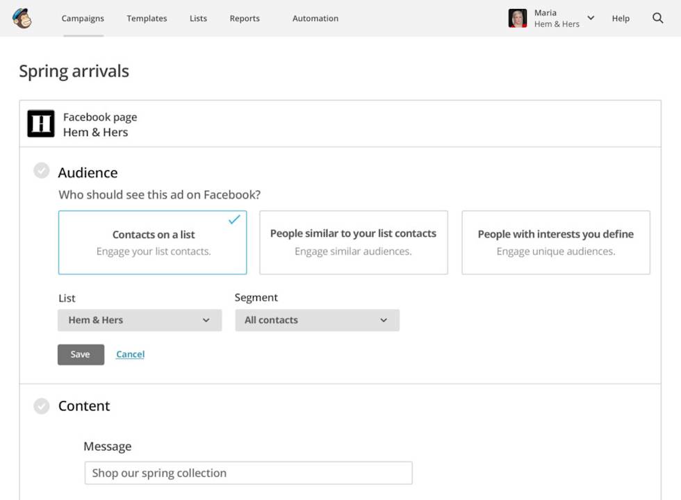 “Using Mailchimp’s intelligent segmentation to target recent customers or active subscribers, businesses can quickly create lookalike audiences in Facebook,” says John. “There’s no more guessing at who to target your ads to. We integrate with Facebook’s data science models to make customer acquisition smart and easy.”