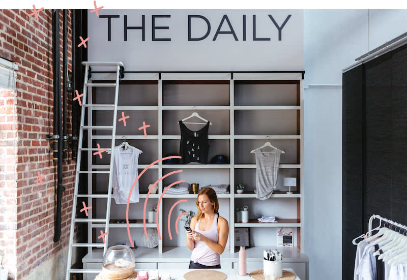 With 30-feet-high ceilings and large windows that fill the exercise rooms with sunlight during the day, The Daily is decidedly more gorgeous than a typical fitness studio. Everything from the name (“It was inspired by a coffee shop”) to the mantras (“Hurts so good” and “Do it on the daily”) painted on the walls is meant to motivate Lily’s customers to make Pilates a practice.