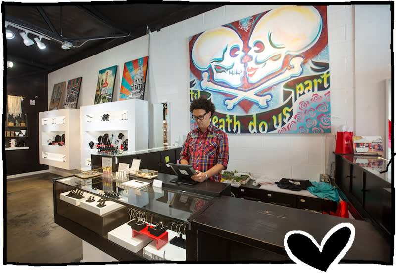 The only similarity between Triple Z (which also includes art, books, and “famous crap”) and Limbo Jewelry (minimal, modern, handcrafted accessories) are its owners. Although Anne and Edson joke that the shops are their babies, inside and online, their product and branding couldn’t be more different. Whereas Limbo’s space and aesthetic embraces its nominal spirit, with Triple Z, Anne says, “we merchandise the store with anything that makes us laugh.”
