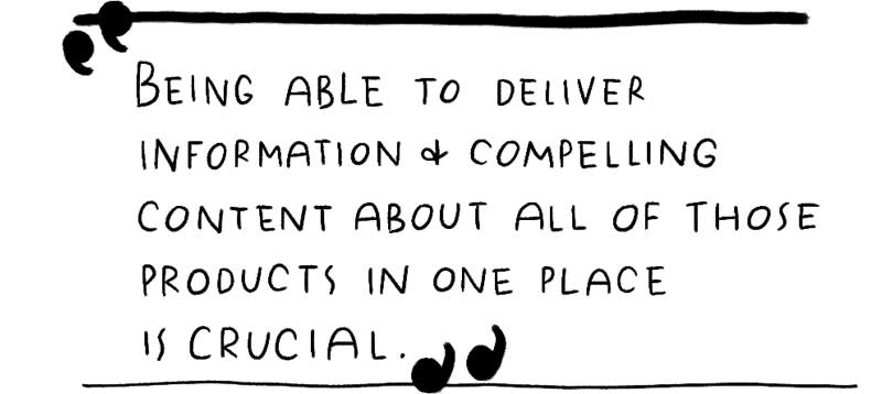 “Being able to deliver information and compelling content about all of those products in one place is crucial,” Tucker says. “Allowing the consumer to choose what to click on for more info, leads to a more informed consumer base and ultimately more sales.”