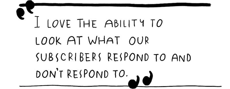 “I love the ability to look at what our subscribers respond and don’t respond to, what subject lines lead to the most opens, when do we get the best open rates, what subjects lead to the most click throughs, what merch items sell best via the newsletters,” Tucker says.
