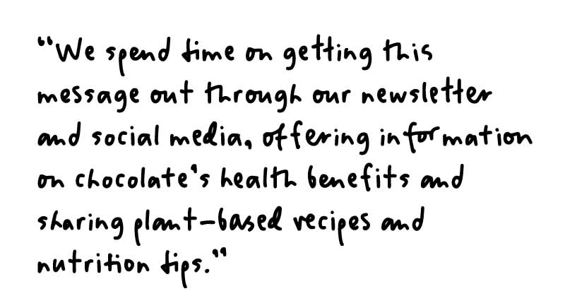 The unique thing about Nichole’s chocolate company is that it’s driven by her mission to educate others on better health, a cleaner environment, and animal welfare. As a nutritionist, Nichole is passionate about fair trade, organic, and plant-based food, and her chocolates reflect that.