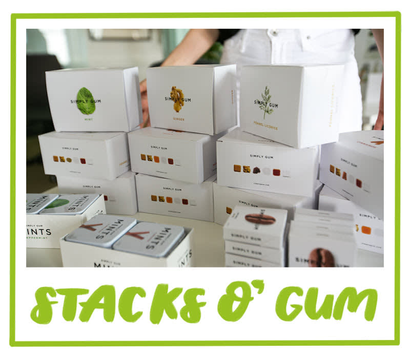 We met with Simply Gum founder Caron Proschan in her SoHo office, where she told us about the genesis of her brand. It turns out that regular chewing gum is made of a plastic base and filled with questionable substances (yikes), so Caron started Simply Gum to offer gum-chewers everywhere a natural and delicious alternative.