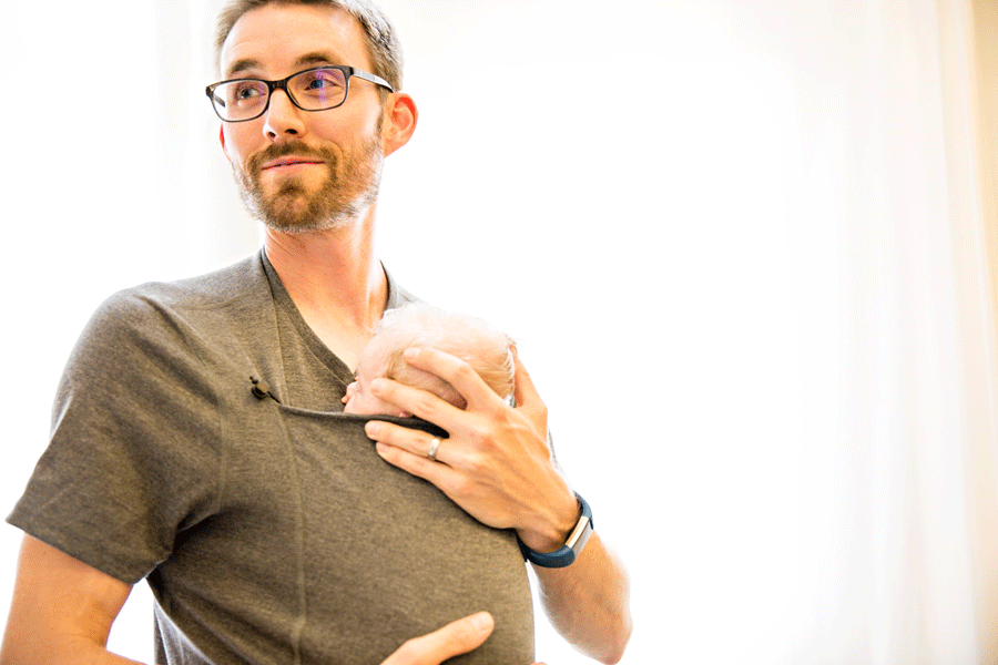 Babywearing first caught Brian and his wife Keri’s attention when they were on a trip to Africa and noticed all of the babies were happily on their mom’s backs. Brian eventually had a breakthrough, realizing he could design gear that would bring parents and babies closer together. After a few prototypes, the Soothe Shirt launched in 2013. Not too long after, the Dad Shirt was released. Both received wide acclaim.