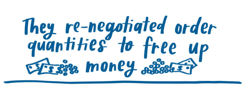 They realized that if we could decrease their purchase orders (POs) to 3,500 units at a time, they could still fulfill all of their orders and have half of the money that was tied up in inventory back as cash to fund ongoing business needs.