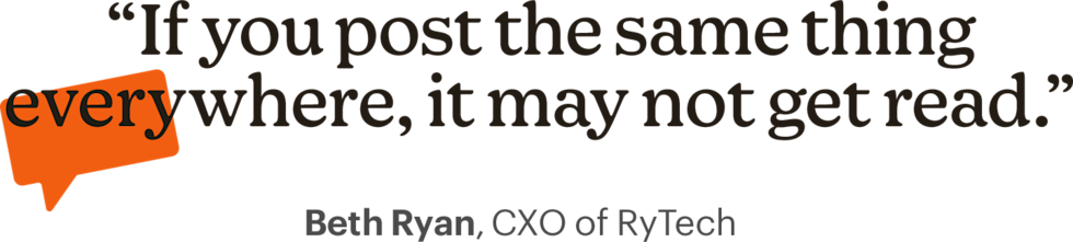 Beth: As far as writing is concerned, short and sweet is better. Get the information across, but avoid too much wordiness. Don’t make references that could confuse people. You may think people are seeing all of your content and know what you’re referring to, but the reality is they probably aren’t. You need to treat each post as an island.