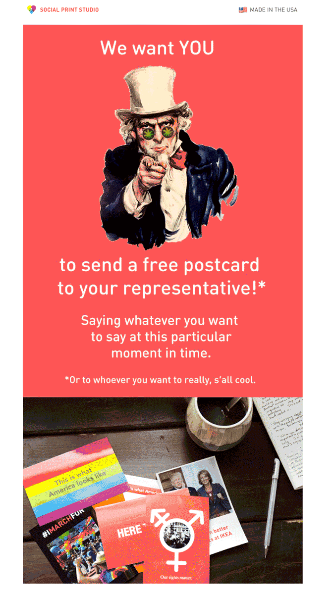 It can be difficult to come up with reasons to send marketing emails, according to Cat Sylvain, the copywriter and creative director for Social Print Studio. “We like to keep our marketing emails very fun and fresh, and we try to avoid recycling content.”
